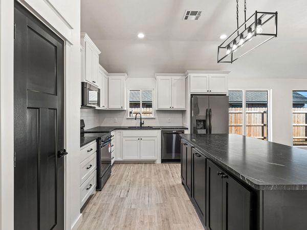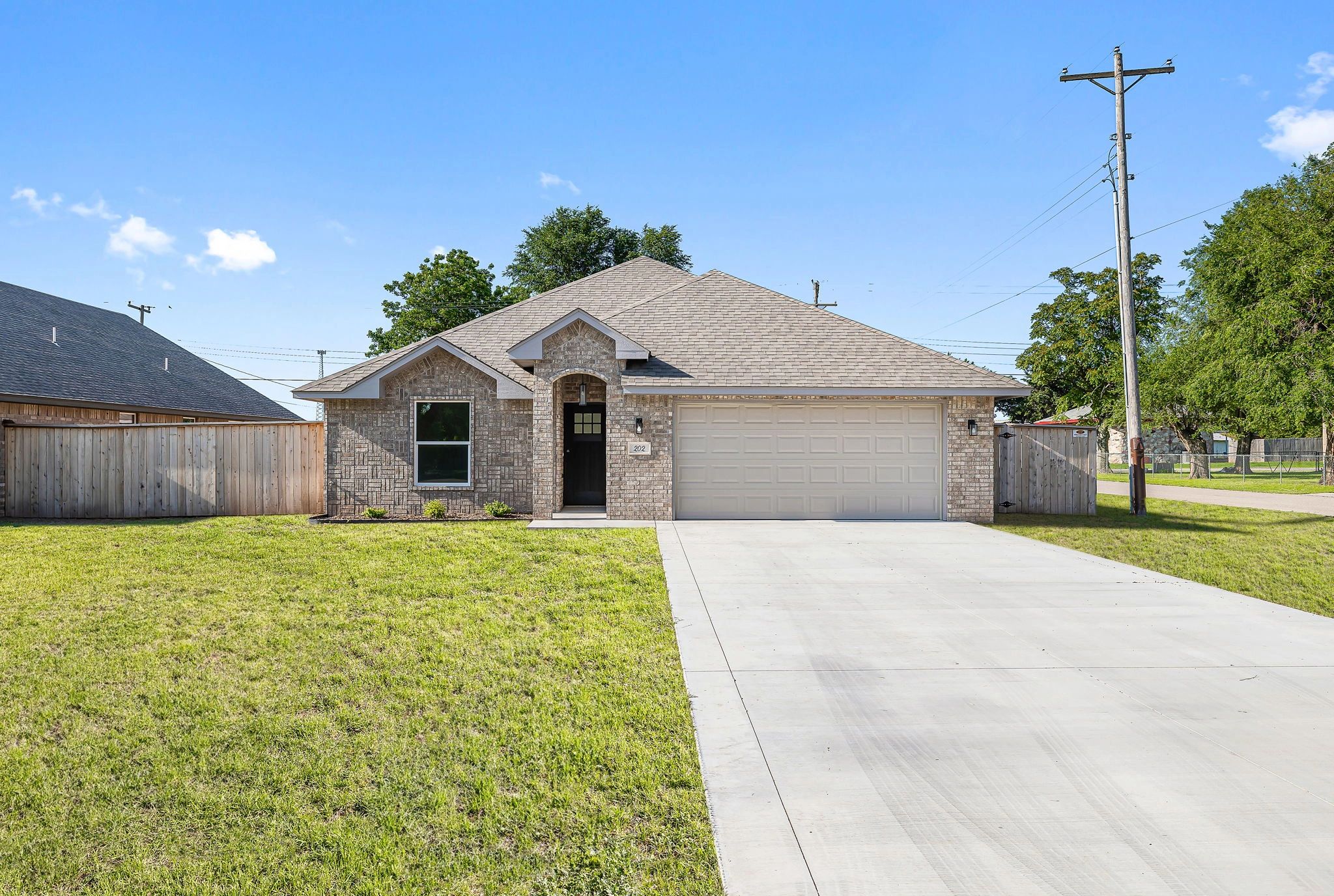 Welcome to 202 E Main Street—an exceptional new construction home that blends modern sophistication with the comfort of small-town living. This 2024-built property offers 2,041 sq ft of thoughtfully designed space, featuring 4 spacious bedrooms and 2 full bathrooms, all on a single level. Step into the open-concept floor plan where natural light pours through tall windows, highlighting the sleek finishes and clean design. The chef-style kitchen is a showstopper with black custom cabinetry, black stainless appliances, and polished gray countertops. A generous center island anchors the space, perfect for entertaining or casual dining. The primary suite is your personal retreat, complete with an ensuite bathroom featuring a deep soaking tub, walk-in shower, dual vanity, and elegant matte black fixtures. Every bathroom is finished with upscale details like black granite countertops, offering style and durability. Enjoy outdoor living in the fully fenced backyard, ideal for pets, play, or peaceful evenings under the stars. Located in the heart of Calumet, you're just a short walk from the local public school and minutes from I-40 and historic Route 66, making commuting or weekend adventures easy.