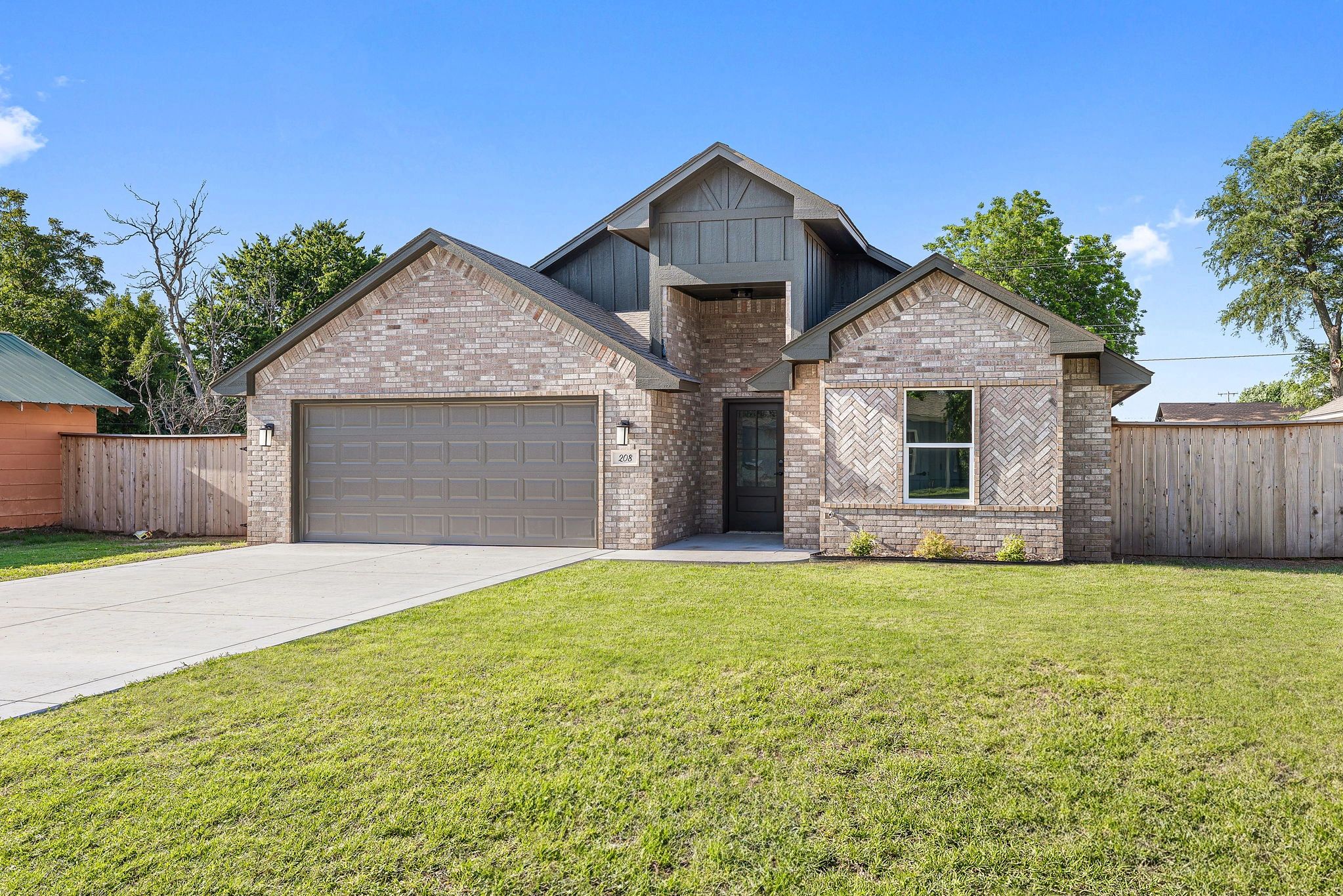 Say Hello to 208 E Main Street, a 2024 custom-built home that blends striking curb appeal, thoughtful design, and modern finishes, all nestled in the heart of Calumet. This 1,834 sq ft residence offers 4 bedrooms and 2 bathrooms, with an open and functional layout that’s perfect for everyday living and entertaining. From the moment you arrive, the contrasting tan brick and dark gray siding set a sophisticated tone. Step inside to find a partially open-concept floor plan, where large windows flood the space with natural light and offer views of the fully fenced backyard, ideal for pets, play, or private outdoor enjoyment. At the center of the home is a beautifully appointed kitchen featuring cool gray cabinetry, granite countertops, sleek stainless steel appliances, and a bold black herringbone tile backsplash that ties the space together with designer flair. The kitchen overlooks the dining area and living room, offering a connected feel while maintaining a sense of defined space. The primary suite and accompanying bathrooms feature elevated finishes with modern fixtures, granite surfaces, and spacious layouts that reflect today’s expectations for comfort and style. Located just blocks from the Calumet public school and minutes from I-40 and Route 66, this home delivers small-town charm with practical proximity to major routes. This one is move-in ready and waiting for you—schedule your private showing today!